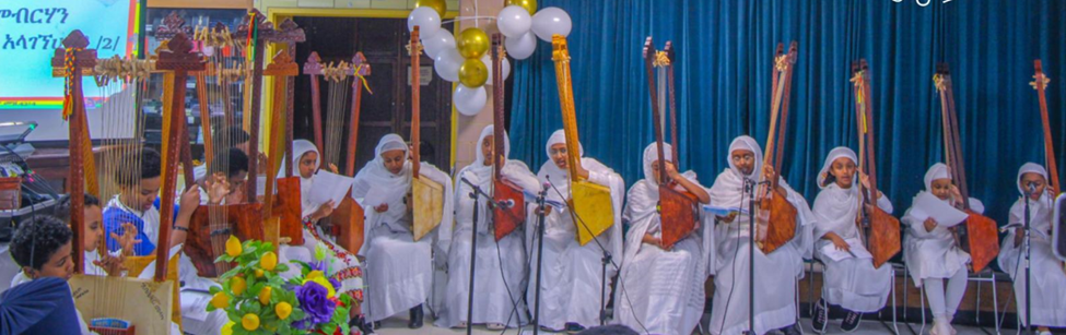 ከዚህ በታች ያለዉ የሚያሳየዉ የቤዛ ኵሉ ሰንበት ተማሪዎች በበገና ምሽት መርኃ ግብር ላይ በበገና ዝማሬ ሲያቀርቡ ነዉ::