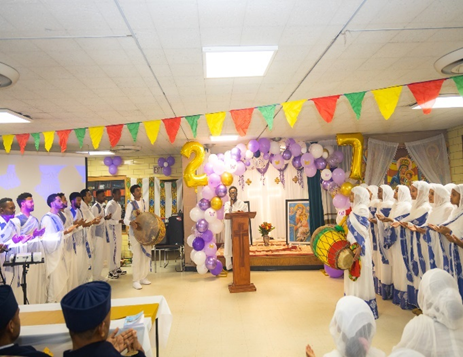 - የቤዛ ኵሉ ሰንበት ትምህርት ቤት አባላት በበዓለ ንግስ ላይ በዝማሬ ያገለግላሉ::