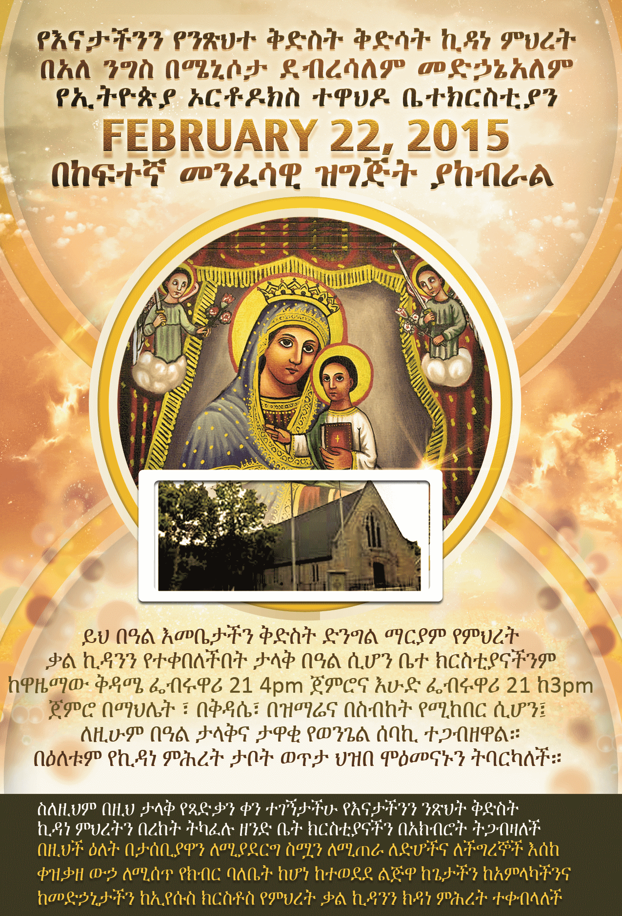 የኪዳነ ምሕረት ንግስ በደብረ ሰላም መድኃኔዓለም የኢ/ኦ/ተ ቤ/ክርስቲያን February 22, 2015